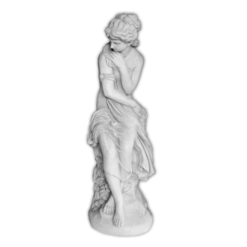 Figurka Kobieta Siedząca na Pniu przedstawia postać kobiety w chwili spokoju, zadumy i odpoczynku, siedzącą na pniu drzewa. Ta scena symbolizuje wyciszenie, bliskość natury i potrzebę zatrzymania się w codziennym pośpiechu. Naturalna biel betonu subtelnie wydobywa detale i nadaje figurce lekkość, która harmonijnie wpisuje się w każdą przestrzeń zieleni.