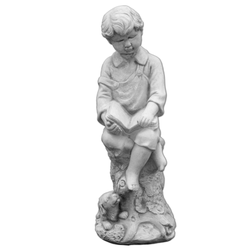 Figurka Chłopczyk Czytający przedstawia małego chłopca pochłoniętego lekturą książki, siedzącego w skupieniu i ciszy. Ta scena symbolizuje piękno dziecięcej ciekawości, chęć poznawania i rozwijania wyobraźni. Naturalna biel betonu podkreśla delikatne detale i nadaje figurce ponadczasowy, harmonijny charakter.
