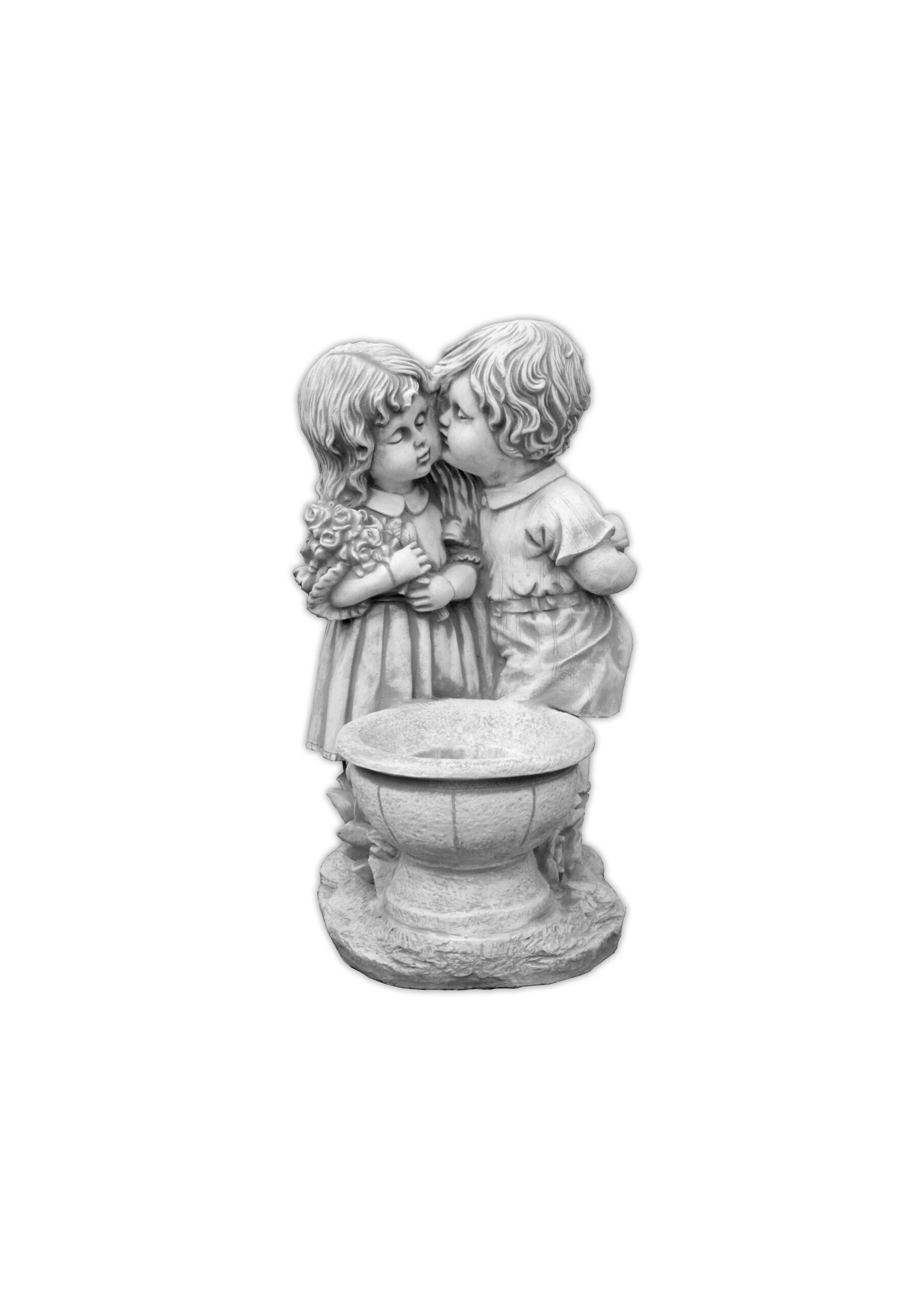 Figurka Parka z Doniczką przedstawia dwoje małych dzieci stojących razem za doniczką, ukazując ich zainteresowanie i delikatną troskę o otoczenie. Ta urocza scena oddaje przyjaźń, dziecięcą ciekawość oraz radość z odkrywania świata. Wykonana z betonu o jasnoszarym odcieniu, figurka stanowi trwałą i pełną uroku dekorację ogrodu, która wnosi do niego atmosferę harmonii i spokoju.