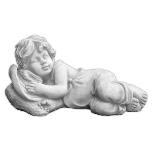 Figurka Chłopczyk Leżący na Kapeluszu ukazuje małego chłopca w lekkiej, relaksującej pozie, leżącego na dużym kapeluszu. Ta scena emanuje spokojem i niewinnością dziecięcej wyobraźni, która potrafi znaleźć radość i odpoczynek w najprostszych rzeczach. Beton w jasnoszarym kolorze nadaje figurce surowej, a zarazem eleganckiej formy, dzięki czemu doskonale komponuje się z naturalnym otoczeniem ogrodu.