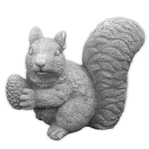 Figurka Wiewiórka z Szyszką przedstawia energiczne, urocze zwierzątko trzymające w łapkach charakterystyczną szyszkę. Z wyraźnie oddanymi detalami sierści i puszystym ogonem, wiewiórka emanuje naturalną radością i zwinnością. Wykonana z betonu w naturalnej szarości, figurka łączy solidność materiału z delikatnością formy, tworząc dekorację pełną leśnego klimatu.